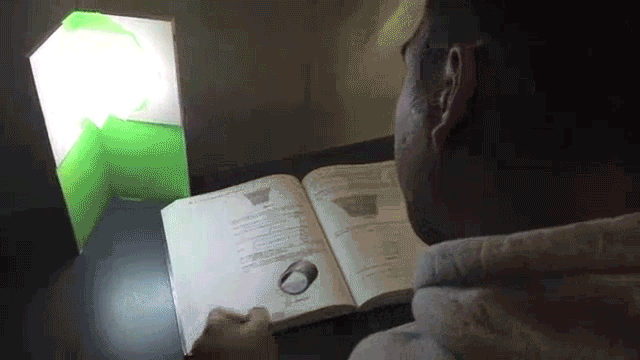 Lumiere lights up when opened. Hang it on the wall or transform it into a taller desk lamp